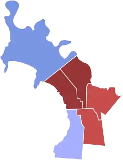 | Ward 6 | 52.22% | 788 | 42.81% | 646 | 4.11% | 62 | 0.86% | 13 | 100.00% | 1,509 |