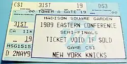 A ticket for Game 1 of the 1989 Eastern Conference Semifinals between the Chicago Bulls and the New York Knicks.