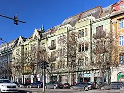 Prominent along the boulevard are two groups of urban buildings designated as historical monuments. The first group consists of the Ciobanu, Gombos, Klein, and Banca Timișana palaces, showcasing a highly successful example of early 20th-century architecture (known as Secession) in Timișoara. Despite their varied stylistic expressions, all four palaces share cornices aligned at the same height.[4] The second group includes the Post Office, the National Bank, the Institute of Medicine, and two student dormitories.[5]