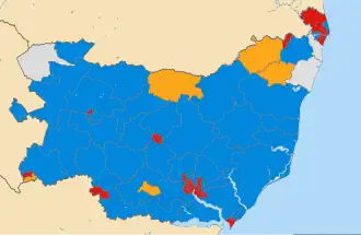 - ^ "Suffolk County Council Election Results 1973-2009" (PDF). Colin Rallings and Michael Thrasher. The Elections Centre, Plymouth University. Retrieved 12 September 2024.