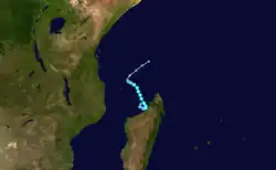 The first named storm of the season, Alibera formed on December 16, well to the northeast of Madagascar. For several days, it meandered southwestward while gradually intensifying. On December 20, Alibera intensified to tropical cyclone status with 10‑minute winds of 120 km/h (75 mph), or the equivalent of a minimal hurricane. That day, the Joint Typhoon Warning Center (JTWC), an unofficial warning agency for the region, estimated peak 1‑minute winds of 250 km/h (160 mph), while the Météo-France office in Réunion (MFR) estimated 10‑minute winds of only 140 km/h (87 mph). After drifting erratically for several days, the storm began a steady southwest motion on December 29 as a greatly weakened system. On January 1, Alibera struck southeastern Madagascar near Mananjary, having re-intensified to just below tropical cyclone status. It weakened over land but again restrengthened upon reaching open waters on January 3. The storm shifted directions while moving generally southward, dissipating on January 5.[2][9] It was the second longest-lasting tropical cyclone in the basin since the start of satellite imagery, with a duration of 22 days. Only Cyclone Georgette in 1968 lasted longer at 24 days.[10]