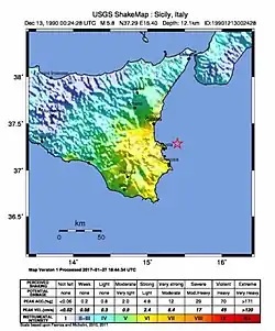 - ^ a b "M 5.6 – 20 km ENE of Augusta, Italy". United States Geological Survey. 13 December 1990. Retrieved 20 August 2021.