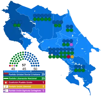 | National Liberation Party | 559,632 | 41.88 | 25 | –4 |
