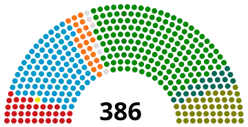 Of the 386 seats in the National Assembly, 176 were elected from single member constituencies, 120 from multi-member constituencies and a further 90 from "compensatory" national seats.[11]