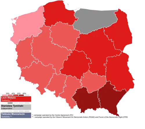 | Lech Wałęsa | Stanisław Tymiński | Turnout | ||||