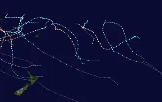 During the season, a significant increase in the amount of tropical cyclones occurring within the South Pacific basin was observed, with eleven tropical cyclones occurring within the basin during the season compared to three during the previous season.[1][2] This increase was attributed to a mature El Niño episode, that had started developing towards the end of the previous season.[2][3] During the season the major areas of tropical cyclogenesis were shifted eastwards, from their mean position towards the more central parts of Pacific.[1]