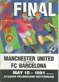 The 1991 European Cup Winners' Cup final was a football match played between Manchester United and Barcelona on 15 May 1991 at Feijenoord Stadion, Rotterdam. It was the final match of the 1990–91 European Cup Winners' Cup and the 31st European Cup Winners' Cup final. It came at the end of the first season of the reintroduction of English clubs into European competition after the ban following the Heysel disaster in 1985.