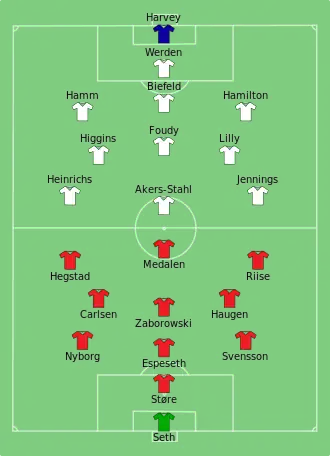 - ^ a b "Tactical Line-up – Norway-United States" (PDF). FIFA.com. Fédération Internationale de Football Association. pp. 50, 54. Archived from the original (PDF) on 13 September 2015. Retrieved 13 October 2013.