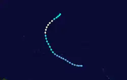 Tropical Storm Enrique formed in the eastern Pacific basin, where it reached its peak intensity as a category 1 Hurricane, becoming Hurricane Enrique. Enrique lasted for several days drifting north of the Hawaiian Islands as a weak system.[4][5][6] As Enrique approached the International Dateline, the system started to redevelop. Shortly after crossing the dateline, Enrique became a tropical storm again on August 1. It lasted for less than 24 hours before strong upper-level wind shear dissipated its convection, exposing the cyclone's circulation.[7] No damages or casualties were caused by Enrique.[6][7][8] It is one of only eight tropical cyclones to exist in all three tropical cyclone basins in the Pacific Ocean.[7] The others are 1986's Georgette,[9] 1994's Li and John, 1999's Dora, 2014's Genevieve, 2018's Hector and 2023's Dora.