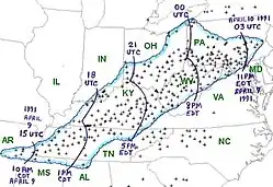 - ^ Fitzwater, Joe (April 9, 2022). "A Look Back: April 9th, 1991 – The Great West Virginia Derecho". WOWK. Retrieved December 8, 2024.