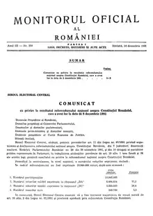 - 8 December – Is adopted, through a national referendum, the new Constitution of Romania, approved by the Constituent Assembly on 21 November 1991; development, discussion and adoption of the Constitution lasted a year and a half.[6]