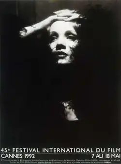![]() Official poster of the 45th Cannes Film Festival, featuring a portrait of German actress Marlene Dietrich by Don English.[1] | |