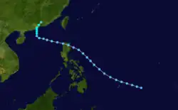 In Vietnam, at least 21 people died and while 80 were reported missing.[15] Intense winds uprooted over 500 trees, downed electrical cables and damaged about 140 houses in Hanoi. As a result of the storm, in the capital alone, three people were killed while another three were injured. Massive waves engulfed several coastal fishing villages in Cát Hải district, with seven people being missing there.[17] Elsewhere, in Hainan, one person died.[16] In the Philippines, combined with the effects of nearby Bobbie, heavy rainfall would produce mudflows in the Philippines. These poured down the Bucao, Balinquero and Maraunot rivers, causing them to rise up 6 ft (1.8 m).[12] Economic losses in Hainan are estimated at 223 million RMB (US$40.5 million).[18]