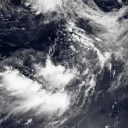 On 2 January, stronger-than-normal low-level westerlies were observed east of New Guinea. As a result of these increased winds and an area of cloudiness, two areas of convection on different sides of the equator formed. The next day, these areas began consolidating.[4] As a result, on 4 January, the Japan Meteorological Agency (JMA) noted that the northern area of convection had developed into a tropical depression.[5] Several hours later, the Joint Typhoon Warning Center (JTWC) issued a Tropical Cyclone Formation Alert (TCFA) on the depression, issuing their first warning on Tropical Depression 01W later that day.[4] Early on 6 January, both the JTWC and JMA had noted that the tropical depression had intensified into a tropical storm,[5][4] causing the former agency to name it Axel.[4]