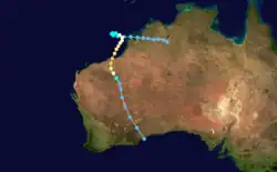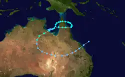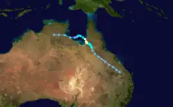 Twice transited Cape York Peninsula before making a final landfall along the southern coast of the Gulf of Carpentaria, in the Northern Territory.[4] Severe flooding triggered by Cyclone Ethel resulted in A$75 million (US$57 million).[5]