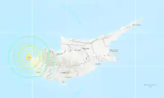 ![]() Map of Cyprus and the epicenter of the earthquake | |