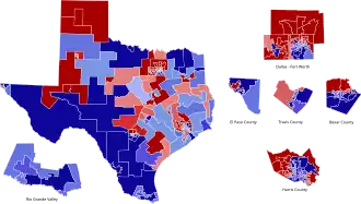 Democrats had fully controlled the redistricting process in 1991, and Republicans sued over the Texas House's map. The courts partially overhauled the map as a result of these lawsuits.[4] Democrats codified the court's map into law in a January 1992 special session.[5] The 1995 lawsuit Thomas v. Bush further altered the maps, as the courts reached a settlement with the legislature to alter the several districts in Harris, Dallas, and Bexar Counties for the 1996 elections.[4][6][7]