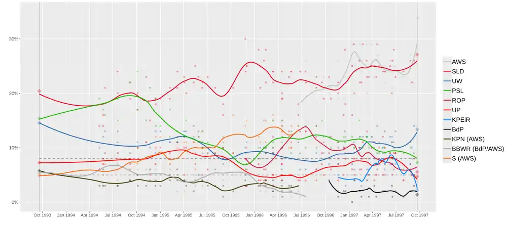 ^Cimoszewicz became Prime Minister on 7 February 1996, but was not the leader of SLD.