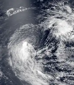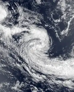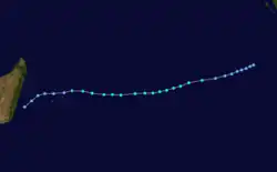 In November, rapidly weakening Tropical Cyclone Alison moved from the Australian basin and dissipated immediately upon entering the south-west Indian Ocean on November 13.[19] On December 4, short-lived Tropical Disturbance A3 was classified by MFR, subsequently drifting into the Australian region.[20] Possibly related to the previous system, Tropical Cyclone Cathy moved from the Australian basin into the basin on December 28, quickly dissipating.[20][21]