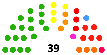 †: Seat change represents seats won in terms of the current alliances, which is considerably different from the last election.