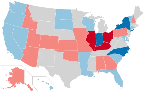 ![]() Results of the elections: Democratic gain Democratic hold Republican gain Republican hold No election | ||||||||||||||||||||||||||||||||||||||||