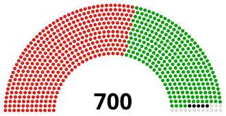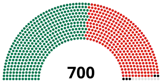 On 20 October, PKB chairman Abdurrahman Wahid was elected, beating Megawati Sukarnoputri by 373 votes to 313, although her party (PDI-P) won the most votes in the legislative election and had one-third of the parliamentary seats. This triggered riots among Megawati's supporters. The following day, Megawati was nominated by Gus Dur's party (PKB) as vice president and got elected, beating Hamzah Haz from the PPP by 396 votes to 284. This ended the street protests.[4][5]