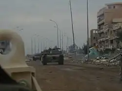 In May 2003, the division deployed to Iraq and assumed responsibility for Baghdad, under command of Major General Ricardo Sanchez, relieving the 3d Infantry Division. The 1st Brigade, under Colonel Michael S. Tucker and after July 2003 under Colonel Peter Mansoor, assumed responsibility for the Rusafa and Adhamiya districts of central Baghdad.[12] The division was scheduled to return to Germany in April 2004 but was extended in country an additional 3 months in order to oppose an uprising of Shia militia led by Moqtada Al Sadr. During the extension Task Force 1–37 Armor ("Bandits") fought Sadr's forces in Karbala while Task Force 2–37 AR ("Dukes") along with elements of 2–3 FA ("Gunners") fought in Diwaniya, Sadr City, Al-Kut, and Najaf. Task Force 1–36 IN ("Spartans") became the Combined Joint Task Force 7 Operational Reserve and conducted operations along Route Irish from Baghdad International Airport to the Green Zone in support of the 1st Cavalry Division. Forces from the 2d Brigade fought in Kut. During its 15-month deployment, the division lost 133 soldiers.