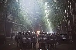 On the occasion, Carabinieri formed the shortly-existed Compagnie di contenimento e intervento risolutivo, units formed with personnel drawn from existing Battalions of the 1st Carabinieri Mobile Brigade (Battalions "Lombardia", "Lazio", "Toscana", "Campania" and "Sicilia"),[17] integrated with personnel drawn from the more military-oriented 2nd Carabinieri Mobile Brigade.[17][18] Critics of the CCIR frequently point out the militarization of police brought by the establishment of such units.[18]