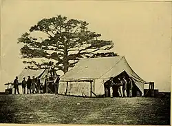 The battery started out with one-hundred and fifty-six men, forty-six of whom had reenlisted and altogether received about one-hundred and forty recruits. Its casualty list consisted of two killed, eighteen wounded, two accidentally wounded, twenty died of disease, and four discharged for disability.[4]