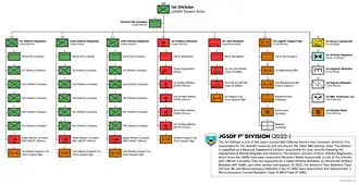 The 1st Division (第1師団, Dai-Ichi Shidan) is one of nine active divisions of the Japan Ground Self-Defense Force. The division is subordinated to the Eastern Army and is headquartered at Camp Nerima in Nerima, Tokyo. Its responsibility is the defense of Tokyo and the Chiba, Ibaraki, Kanagawa, Saitama, Shizuoka and Yamanashi prefectures.