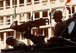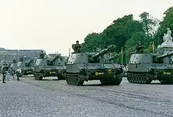 The 1st Field Artillery Regiment was established on 21 February 1836, when the Regiment of Artillery was split up into three new regiments. The regiment participated in both World Wars. During the Second World War, it remained active after the Eighteen Days' Campaign, the campaign of the Belgian army in May 1940 when Belgium was invaded by Germany. The First Belgian Battery, which was created in the United Kingdom in February 1941, participated as part of the Brigade Piron in the Battle of Normandy and in fights in Belgian and Dutch Limburg during the liberation of Western Europe.[1] For this reason, the regiment's first battery, A Battery, is known as Batterie Libération (French for "Liberation Battery").