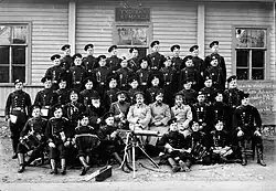 It was initially established on 27 March 1856 as the 1st His Majesty's Life Guards Rifle Battalion from several other regiments within the 1st Guards Infantry Division[1] and the 2nd Guards Infantry Division, along with some other units.[2] In 1863 the unit took part in quelling the Polish uprising and in 1870 became part of the newly formed Guards Rifle Brigade, under the command of Grand Duke Vladimir Alexandrovich.[1] It later had the distinction of personally escorting Emperor Alexander II during the Russo-Turkish War of 1877-78.[2] In 1910 it was raised from a battalion to a full regiment and in 1914, with the outbreak of World War I and the general mobilization, it received a reserve battalion. In 1917 it was renamed "1st Guards Rifle Regiment" and was completely dissolved in May 1918. Several of its members went on to fight in the White Army during the Russian Civil War. In 1951 an organization for veterans of the regiment was formed by some White émigrés.[1]