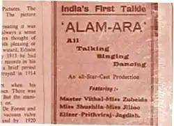 The release in 1931 of the first Indian talkie – Alam Ara, produced by the Imperial Film Company, marked as beginning of new era in Indian film industry. The film was released at the Majestic Cinema in Mumbai on 14 March 1931.[5] Over the period, India produced many films and eventually became one of the largest film industries along with Hollywood and Chinese cinema.[6]