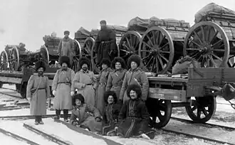 As part of the general mobilization of the Russian Imperial Army in August 1914, the 1st Siberian Rifle Artillery was transferred to the Kazan Military District. In September, its parent corps, the 1st Siberian Army Corps, became part of the 5th Army on the Southwestern Front. In November 1914, the brigade had become part of the 2nd Army. From June 1915 the brigade was part of the 1st Army and in August of that year it was returned to the 2nd Army as part of the Western Front. Towards the end of 1916, it was transferred to the 10th Army, where it would remain until the end of the war, and on 23 April 1917 a new light artillery battery was formed within the brigade. With the upheaval of the Russian Revolution in 1917–1918 and the subsequent collapse of the Russian army, the 1st Siberian Rifle Artillery Brigade was demobilized.[1]