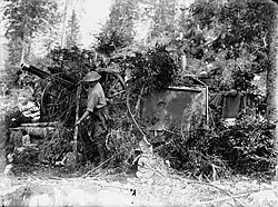 Fighting continued on Pozières Ridge into September. On 3 September all batteries of CCXLI Bde were engaged: A & B supporting a failed attack by 75th Bde of 25th Division on 'Turk Trench' near Mucky Farm, C & D (H) covering 49th (WR) Division's attack north of Thiepval, which succeeded in capturing 'Fabeck Graben'. From 6 September Brigade HQ with A and D (H) Btys came under tactical command of 32nd Bde of 11th (Northern) Division, which captured the 'Wonder Work' on 14 September. 147th (West Riding) Bde of 49th (WR) Division then took over again for the follow-up attack on 16 September. CCXLI Brigade HQ was relieved on 18 September, but the batteries remained in action, with D (H) preparing positions on the railway at Pozières. All the batteries fired in support of the attack on Thiepval on 26 September. Over the following days the Germans counter-attacked strongly, attempting to recapture 'Stuff Redoubt' and the 'Schwaben Redoubt', and the batteries suffered a number of casualties before they were relieved on the night of 30 September.[26][31][32][33][34][35]