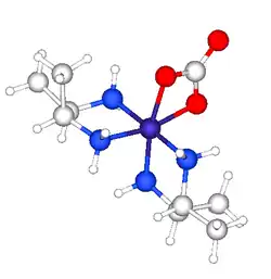 In coordination chemistry, 2,3-butanediamine (abbreviated bn) has illuminates aspects of the stereochemistry. The structure of [Co(meso-2,3-butanediamine)2CO3]+ confirms the presence of the rarely observed axial methyl groups on each of the diamine-cobalt rings.[7]