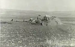The 2/5th Field Regiment was formed in May 1940, as part of the all volunteer Second Australian Imperial Force. The regiment's numerical designation had previously been used to form the "2/5th Army Field Regiment" in November 1939, but this unit had subsequently been redesignated as the "2/5th Anti-Tank Regiment", and then the "2/1st Anti-Tank Regiment" in January and February 1940.[1] The newly raised regiment came into being at Ingleburn, New South Wales, and at the outset consisted of two batteries: the 9th and 10th.[2] Most of the regiment's personnel came from Queensland, although one battery was recruited from Tasmania. The regiment's first commanding officer was Lieutenant Colonel Horace Strutt.[3] Assigned to the 7th Division, the regiment's personnel completed training at Bathurst, New South Wales, before departing for the Middle East in October 1940. Concentrating in Palestine, the regiment was only partially equipped. It continued its training throughout early 1941 while it waited for the remainder of its equipment and in early 1941 received orders to deploy to Greece; however, they were diverted to Ikingi Maryut, in Egypt, before moving into defensive positions around Mersa Matruh.[2]