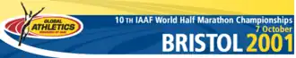 The 10th IAAF World Half Marathon Championships was held on 7 October 2001 in the city of Bristol, UK, and was run immediately before that year's Bristol Half Marathon. A total of 200 athletes, 125 men and 75 women, from 52 countries took part. Detailed reports on the event and an appraisal of the results were given.[1][2][3][4]