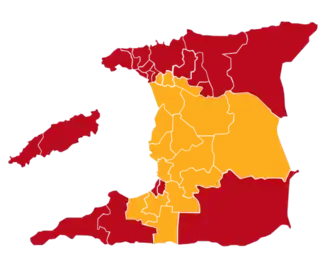 Early general elections were held in Trinidad and Tobago on 7 October 2002,[1] after People's National Movement leader Patrick Manning had failed to secure a majority in the hung parliament produced by the 2001 elections.[2] This time the PNM was able to secure a majority, winning 20 of the 36 seats. Voter turnout was 70%.[3]
