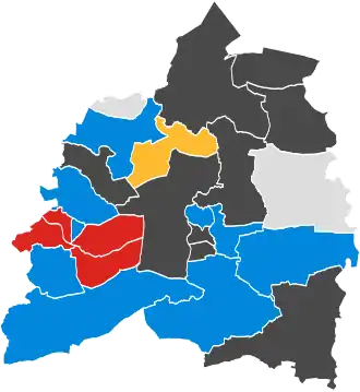 ![]() No election Colours denote the winning party, as shown in the main table of results. | |||||||||||||||||||||||||