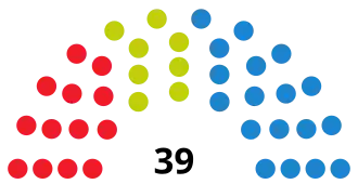Last election 19 seats, 42.5% 14 seats, 33.1% 6 seats, 13.5%