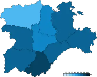 ![]() Constituency results map for the Cortes of Castile and León | |||||||||||||||||||||||||||||||||||||||||||||||||