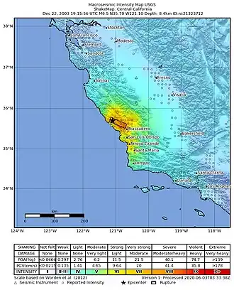 - ^ a b Mark Yashinsky, ed. (2004). San Simeon Earthquake of December 22, 2003. American Society of Civil Engineers. ISBN 978-0784407479.