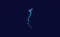 During February 26, RSMC Nadi reported that Tropical Depression 11F had formed, within the Tuamotu Archipelago of islands in French Polynesia.[16] During the next day the system moved eastwards before it was last noted during the next day as it degenerated into a tropical disturbance.[7][17]