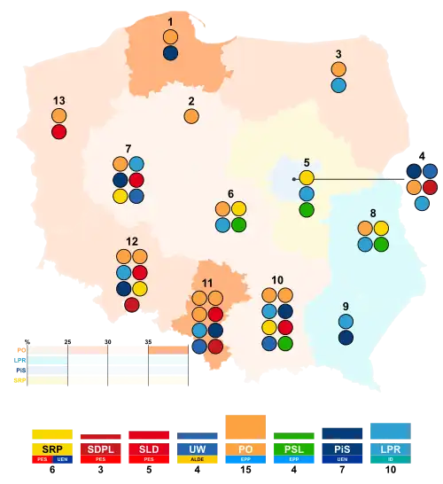 The radical populist Self-Defence of the Republic of Poland, which some opinion polls had predicted would come second, came fourth after the Law and Justice party. The election results were a success for Social Democracy of Poland, which managed to cross the required 5% threshold, and the Freedom Union, which got over twice the expected percentage of votes.