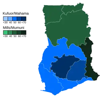 | John Kufuor | Aliu Mahama | New Patriotic Party | 4,524,074 | 52.45 |