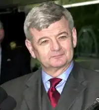 At a second all-day televised hearing on 25 April 2005, Fischer admitted that mistakes had been made during his time in office when thousands of visas to Germany were granted to criminals and prostitutes from Ukraine between 2000 and 2002.[6] Fischer also dismissed opposition arguments that the security and well-being of Germany was significantly harmed by the influx of immigrants, and he contended that once the problem was discovered in 2002 the policy was immediately corrected.[7] Fischer's decision to admit some responsibility came after weeks of stonewalling by his party, which had even tried to delay him appearing before the special parliamentary commission.[8] The hearing lasted 14 hours and was viewed by 700,000 viewers just on Phoenix, a 10.5% quota. After the hearing, members of the CDU/CSU continued to ask for Fischer's retirement, whereas members of SPD and The Greens said that Fischer performed well and that the CDU/CSU members in the commission were not able to show evidence for their accusations.