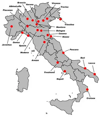 - ^ Juventus started the season with a penalization of 30 points, which was later reduced to 9 on appeal