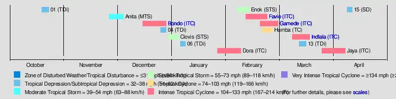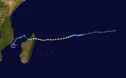 | Indlala | March 9–19 | Intense Tropical Cyclone | 175 km/h (110 mph) | 935 hPa (27.61 inHg) | Madagascar | $240 million | 150 | [6][9] |