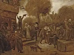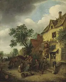 NK3387 | A. van Ostade | Mensen lossen turf en dragen het een huis in Archived 2019-02-25 at the Wayback Machine | 2644 | Limburgs Museum |
